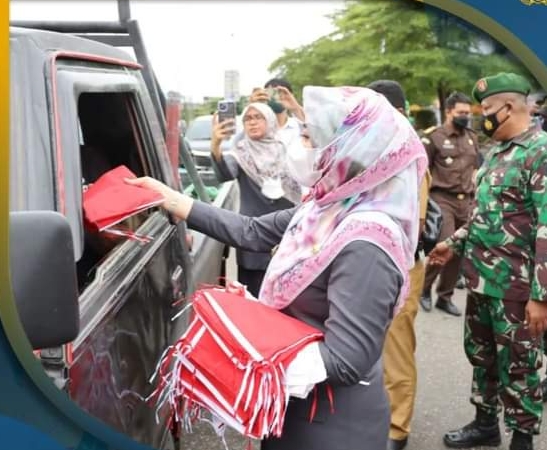 Pembagian bendera itu dilakukan oleh Bupati Berau Sri Juniarsih, Dandim 0902 Berau Letkol Inf Dony Fatra, Kabag Ops Polres Berau AKP Febriadi Silvano Muabuay, Kepala BPBD Berau Thamrin, Wakil Ketua DPRD Berau Syarifatul Sadiah, Asisten 1 Setkab Berau M Hendratno, serta sejumlah OPD terkait.