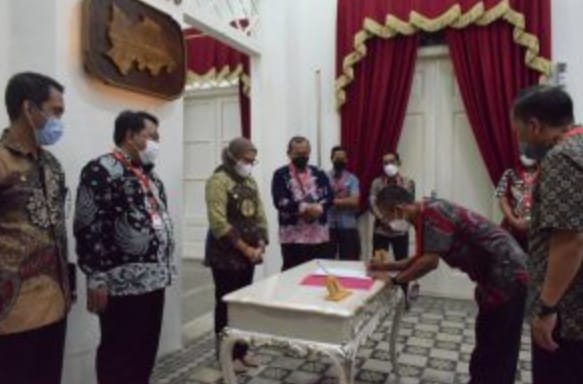 Dalam kesempatan itu Bupati Nina Agustina didampingi Asisten Daerah Pemerintahan dan Kesejahteraan Rakyat Jajang Sudrajat, Plt. Kepala Dinas Pemberdayaan Masyarakat Desa (DPMD) Sugeng Heryanto, Inspektur Indramayu Ari Risdianto menyaksikan penandatanganan fakta integritas yang dilakukan kepala desa dan para camat terkait bantuan mobil Maskara. (MT jahol)