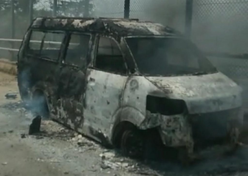 Mobil angkot bernomor polisi A 1990 FD berwarna merah putih yang dikendarai oleh IJ (28) laki-laki saat tengah melintas jembatan ram 3 tol Serang – Panimbang Kecamatan Ciruas tanpa diketahui oleh supir, mobil tersebut mengeluarkan api, sontak sang supir keluar guna menyelamatkan diri.