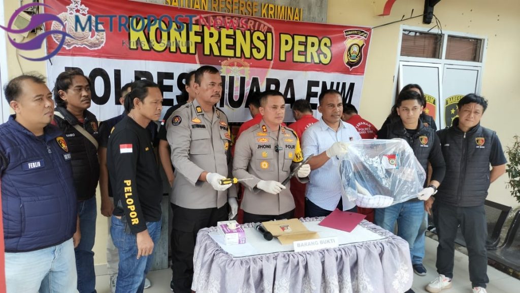 Untuk kepentingan penyidikan , Para tersangka dan barang bukti berupa Satu buah linggis , satu buah obeng modifikasi,satu obeng krisbow, 2 unit sepeda motor beat warna hitam tanpa plat nomor , serta satu unit mobil rental diamankan polres Muara Enim kepolisian daerah sumatera selatan .