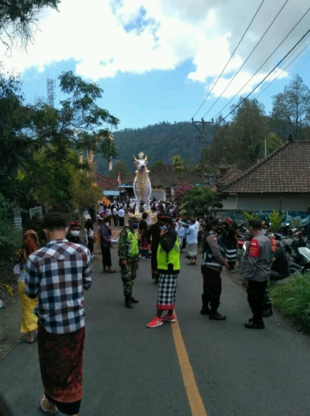METROPOST1.COM, Bali, Bangli — Babinsa Koramil 1626-04/Kintamani bersinergi dengan Babinkamtibmas, Pecalang aparat keamanan lainnya melaksanakan pengamanan Ngaben di Desa Songan, Rabu (29-09-2021).