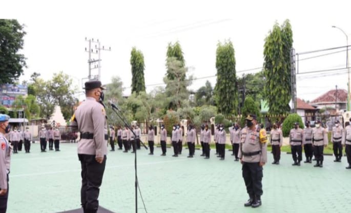 MetropostNews.com, Banyuwangi — Kapolresta Banyuwangi AKBP Nasrun Pasaribu memimpin apel Pergeseran Pasukan (Serpas) dalam rangka pengamanan Pemilihan Kepala Desa (Pilkades) Serentak Kabupaten Banyuwangi yang akan berlangsung Rabu, (17/11/2021) besok.