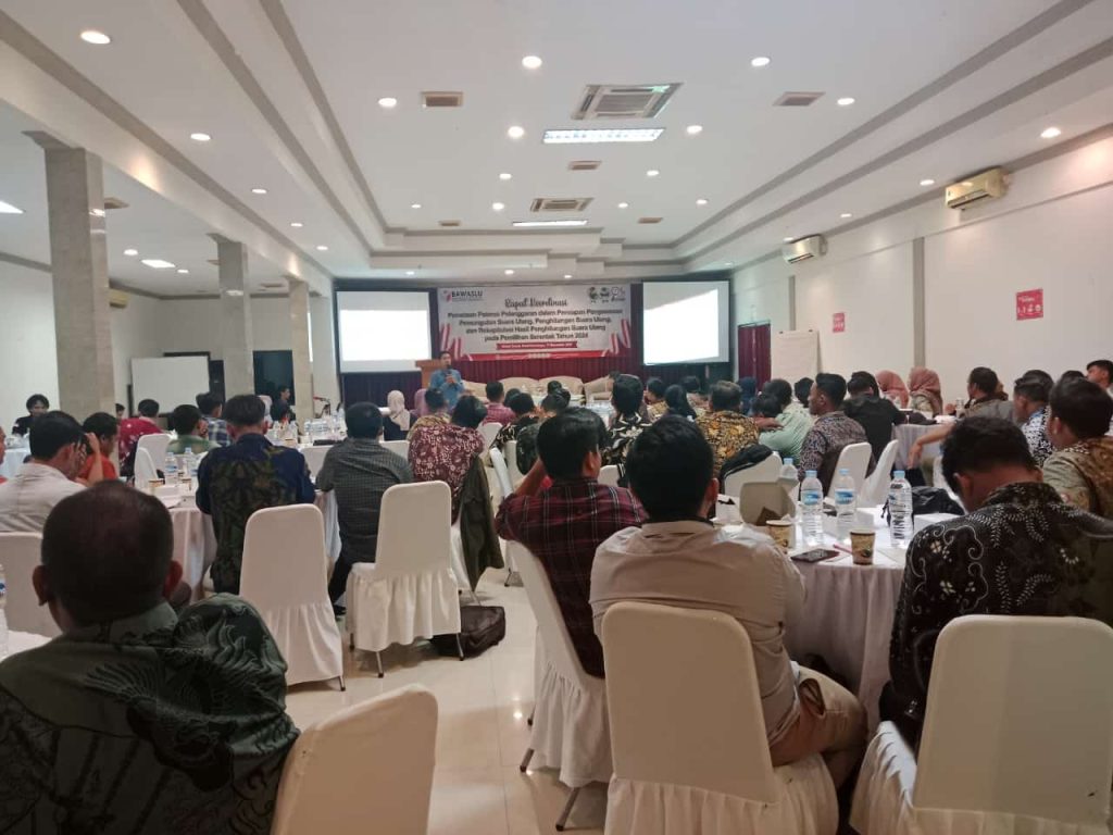 MetropostNews.com-Indramayu – Badan Pengawas Pemilihan Umum (Bawaslu) Kabupaten Indramayu mengadakan rapat koordinasi untuk memetakan potensi pelanggaran dalam persiapan Pengawasan Pemungutan Suara Ulang (PSU), Penghitungan Suara Ulang, dan rekapitulasi hasil Penghitungan Suara Ulang pada Pemilihan Serentak 2024. Kegiatan ini berlangsung di Aula Hotel Grand Trisula Indramayu pada Sabtu (16/11/2024).