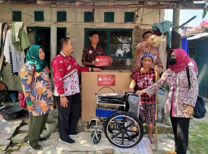 Bantuan kursi roda tersebut diserahkan Camat Cantigi Winaryo didampingi jajaran Dinas Sosial (Dinsos) Kabupaten Indramayu dan kepala desa beserta jajaran di Desa Panyingkiran Kidul Blok Pintu Air Kecamatan Cantigi Kabupaten Indramayu, Kamis (25/8/2022).
