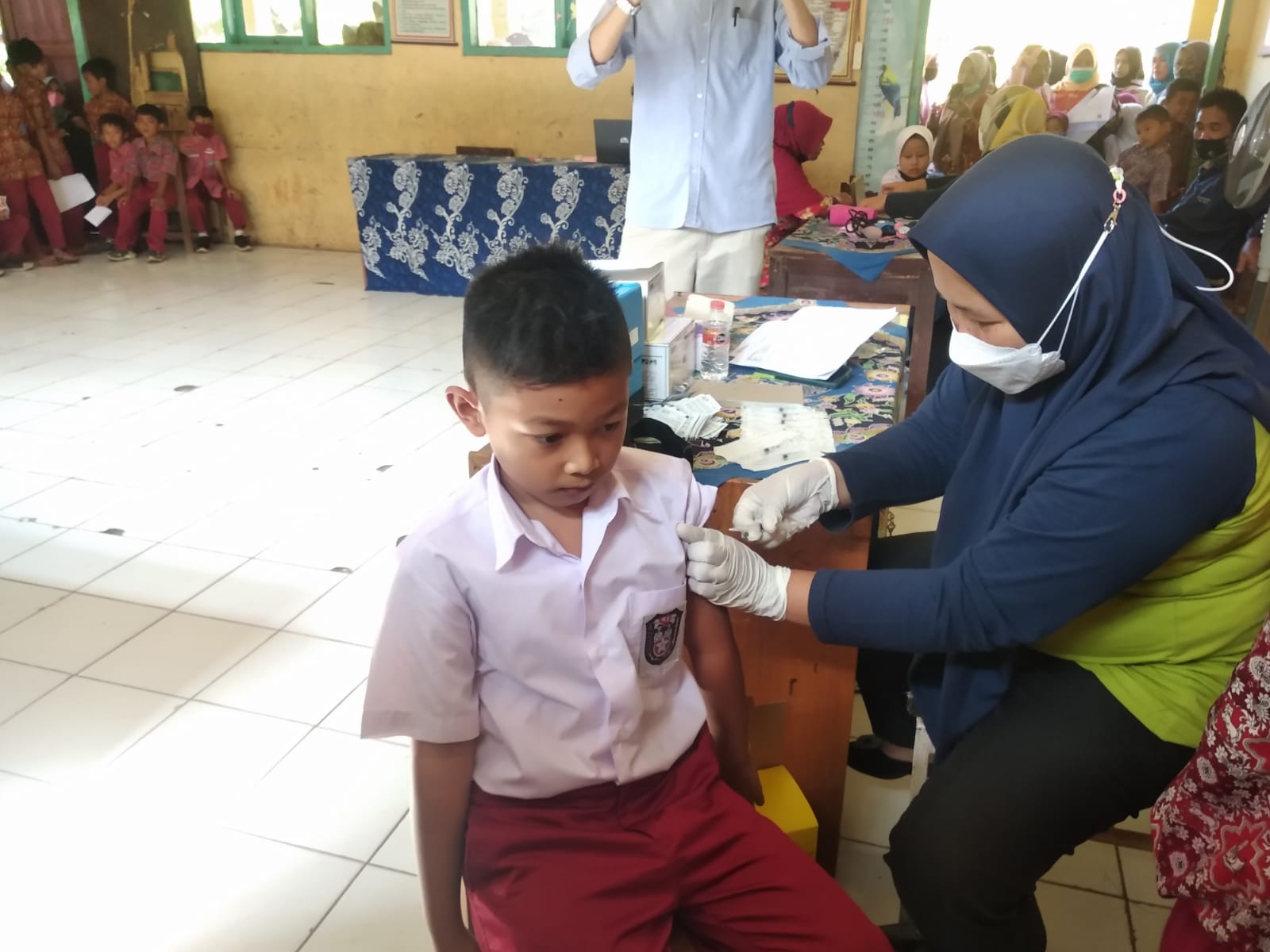 Kali ini vaksinasi dilaksanakan di SDN 1 dan 2 Depok serta MI Nursalam dan Kartawiyah Desa Depok Kecamatan Cisompet Kabupaten Garut, Jum’at (14/02)