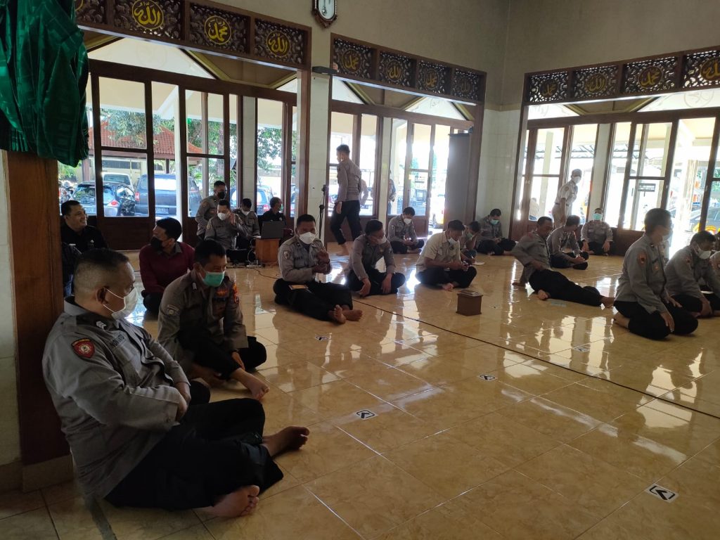 MetropostNews, Banyuwangi — Seluruh anggota Polresta Banyuwangi setelah melaksanakan apel pagi langsung mengikuti bimbingan rohani dan mental (Binrothal), di Masjid Raudhatul Jannah Mapolresta Banyuwangi, Kamis (25/11).
