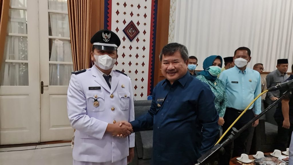 METROPOSTNews.com | GARUT – Bupati Garut, Rudy Gunawan, melantik seorang Kepala Desa (Kades) Pergantian Antar Waktu (PAW) untuk Desa Ngamplang Kecamatan Cilawu yaitu Usep Agus, yang dilaksanakan di Ruang Pamengkang, Kecamatan Garut Kota, Kabupaten Garut, Selasa (31/5/2022). Bersamaan dengan dilantiknya pengurus Form Kabupaten Garut Sehat.