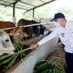 Usai melaksanakan Shalat Idul Adha, Bupati Indramayu Nina Agustina didampingi Ketua PCNU Kabupaten Indramayu K. H. Mustofa, Sekda Indramayu Rinto Waluyo, Forkopimda Indramayu dan PD Indramayu menyerahkan hewan Qurban berupa 2 ekor sapi kepada DKM Masjid Agung Indramayu, di halaman Masjid Agung Indramayu.
