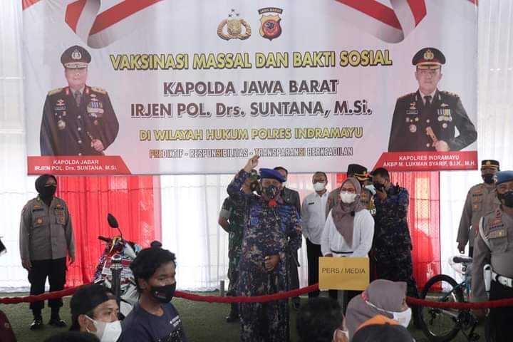 Dalam acara itu, Kapolda Jabar Irjen Pol Drs. Suntana bersama Bupati Indramayu Nina Agustina dan Kepala Kepolisian Resort (Kapolres) Indramayu AKBP M. Lukman Syarif selain meninjau pelaksanaan vaksinasi dan menyerahkan bantuan sosial kepada peserta vaksin. Selain itu, Kapolda Jabar juga meresmikan Gedung Command Center Polres Indramayu.