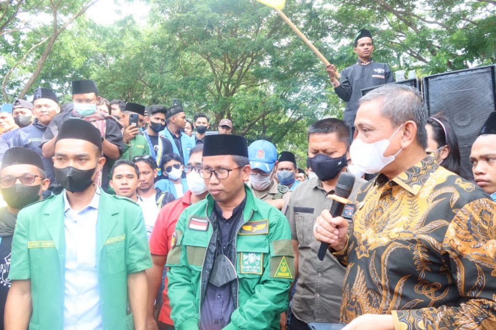 Metropostnews.com/Wajo- Sikap yang patut di jempol ditunjukkan Bupati Wajo, Amran Mahmud. Saat kantornya “digeruduk” ratusan peserta aksi dari berbagai organisasi dan santri As’adiyah yang menolak rencana kedatangan Ustadz Firanda Andirja, Amran memilih menemui langsung tanpa pengawalan ketat, Jumat (25/3/22).