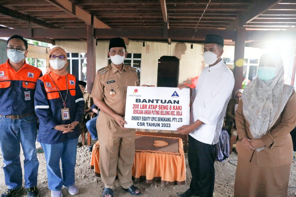 Bantuan yang diserahkan berupa 350 lembar atap seng dengan rincian 200 lembar dari Energy Equity Epic Sengkang Pty. Ltd. dan 150 lembar dari PT Energy Sengkang. Diperuntukkan 285 lembar untuk korban di Desa Pasir Putih, 30 lembar Desa Pattangnga, dan 35 lembar Desa Minangatellue.