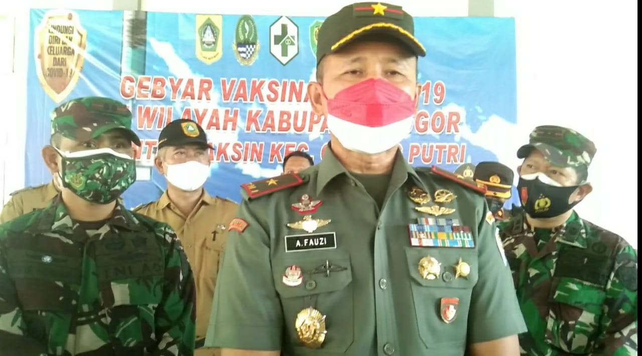 Hal itu dikatakan Danrem 061 Suryakancana Brigjen TNI Ahmad Fauzi ketika memberikan keteranganya kepada oleh sejumlah awak media di Aula Kecamatan Gunung Putri Kabupaten Bogor saat kegiatan Vaksinasi Covid 19, Senin (21/09/2021).