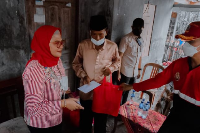 Dalam kesempatan itu Bupati Indramayu Nina Agustina memberikan bantuan sosial dan uang tunai kepada keluarga korban. (MT jahol)