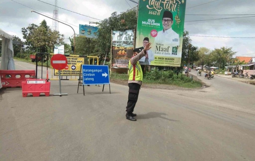 METROPOSTNews.com | Indramayu – Demi terpeliharanya Kamseltibcar Lantas menjelang arus mudik lebaran Idul Fitri tahun 2022, Polsek Balongan jajaran Polres Indramayu Polda Jabar melaksanakan pengaturan lalu lintas atau gatur lalin, bertempat di wilayah hukum Polsek Balongan, Kabupaten Indramayu, Rabu (27/4/2022).