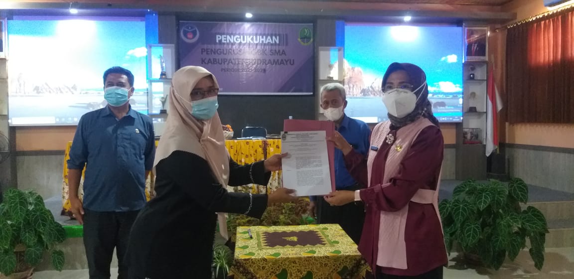 Pengukuhan tersebut dihadiri KCD Pendidikan Wilayah IX Jabar, Hj Dewi Nurhulaela dan Ketua MKKS SMA Kabupaten Indramayu H.Setyo Adisapto, S.Pd., M.M serta Pengawas SMA Dr Akhmadi, M.Pd., M.Si dan Drs. H Sulkhin, M.Pd. serta unsur dari perwakilan Kepala Sekolah SMA Sekabupaten Indramayu.