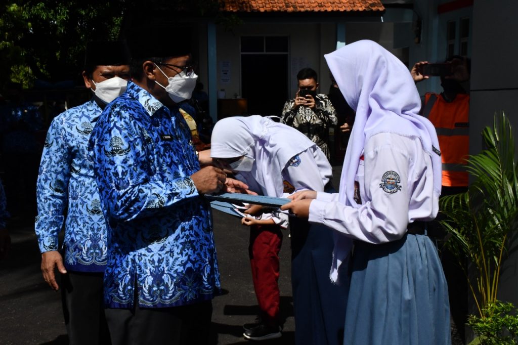 Usai upacara dilanjutkan dengan pemberian Santunan/Beasiswa Bagi anak ASN yang berprestasi secara Simbolis dan Penandatanganan kerjasama MOU dengan PT. Asuransi Jiwa Taspen. ( Sunarto Aryodinoto )