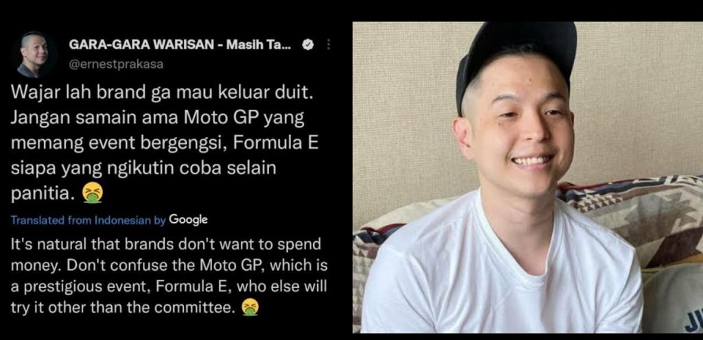 “Wajar lah brand ga mau keluar duit. Jangan samain ama Moto GP yang memang event bergengsi, Formula E siapa yang ngikutin coba selain panitia,” tulis Ernest.