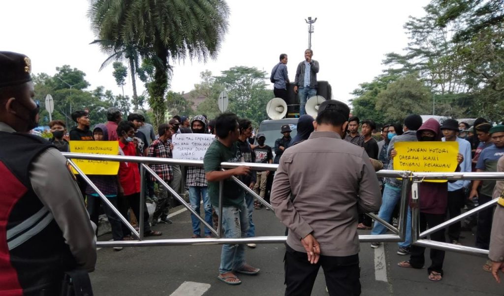 Aksi yang berjalan dengan tertib tersebut mendesak agar pemerintah Kabupaten Tangerang menutup wisata Padi-Padi Piknik yang berlokasi di Desa Kramat, Kecamatan Pakuhaji.