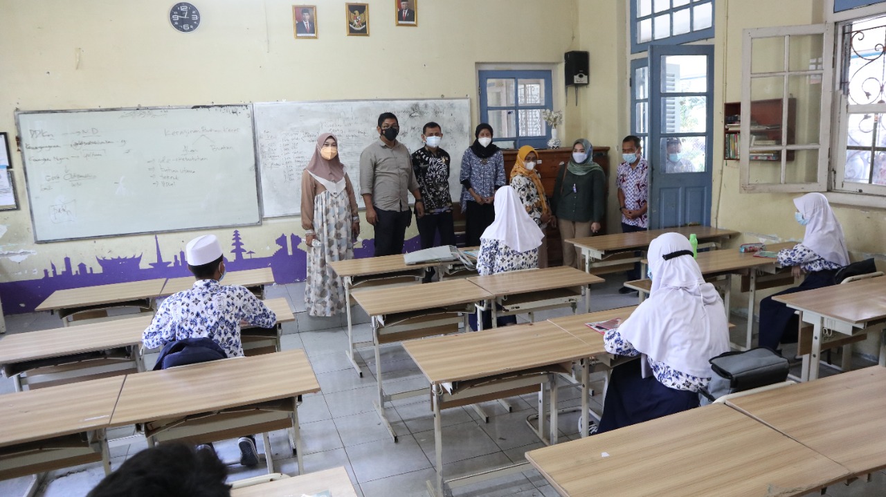 METROPOST1.COM, Cirebon — Komisi III DPRD bersama Disdik Kota Cirebon secara bersama-sama meninjau pelaksanaan pembelajaran tatap muka (PTM) terbatas di SMP Negeri 1 Kota Cirebon dan SD Negeri Kebon Baru IV, Kamis (16/9/2021).