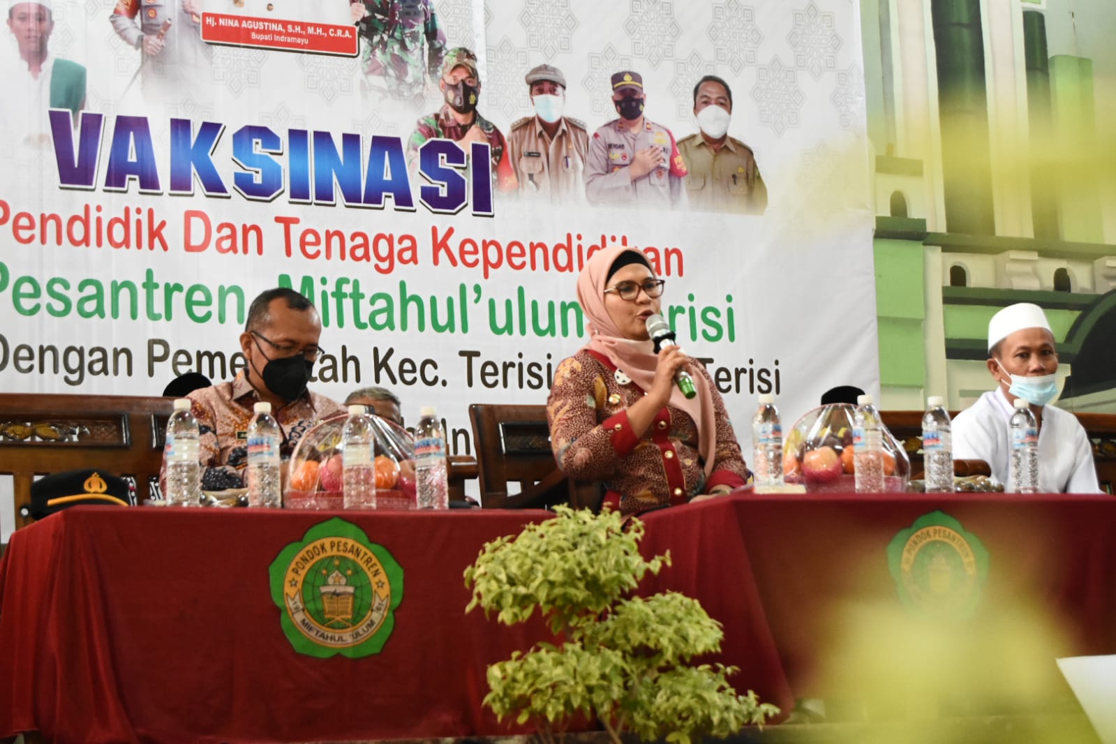 METROPOST1.COM, Indramayu — Bupati Indramayu, Nina Agustina Da’i Bachtiar, mengajak seluruh santri di Kabupaten Indramayu untuk segera melakukan vaksinasi covid-19. Hal itu dilakukan sebagai ikhtiar untuk keluar dari pandemi covid-19.