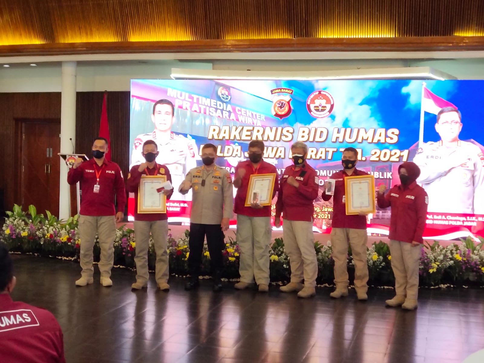 METROPOST1.COM, Indramayu — Sie Humas Polres Indramayu raih penghargaan dalam kegiatan Rakernis (Rapat Kerja dan Teknis) Humas Polda Jabar T.A. 2021 dengan Tema “Strategi Pemantapan Komunikasi Publik Yang Presisi di Era Post Truth, bertempat di bumi Sangkuriang, Bandung, Jawa Barat, Rabu (15/09/2021).