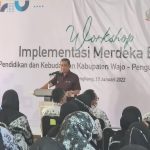 Saat menyampaikan sambutan, bupati bergelar Doktor ini, meminta agar pandemi jangan sampai memadamkan semangat para guru, dan sebaliknya harus menyalakan obor perubahan. Menurutnya, meskipun di tengah keterbatasan, pendidikan harus tetap berjalan.