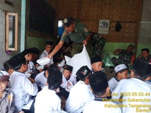 Metropostnews.com-Tangerang – Kegiatan safari Jum’at Berkah Koramil 05 Balaraja secara Istiqomah dilaksanakan diwilayah Koramil 05 /Balaraja, dengan membagikan Nasi Kotak siap saji kepada masyarakat kurang mampu dan di Pondok Pesantren Darul Ibtida Pimpinan Ustadz Murtadho yang beralamat di Kp. Rahong RT 04/02 Desa Sukamulya Kecamatan Sukamulya Kabupaten Tangerang, Jumat (03/01/2025).