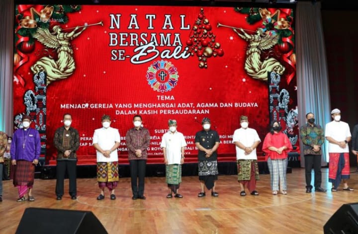 METROPOSTNews.com | Bali — Kepala Kepolisian Daerah Bali, Irjen Pol. Drs. Putu Jayan Danu Putra, S.H., M.Si. menghadiri Perayaan Natal Bersama tahun 2021 Provinsi Bali di balai budaya Giri Nata Mandala, Pusat Pemerintahan Kabupaten Badung pada, Jumat (10/12/2021).