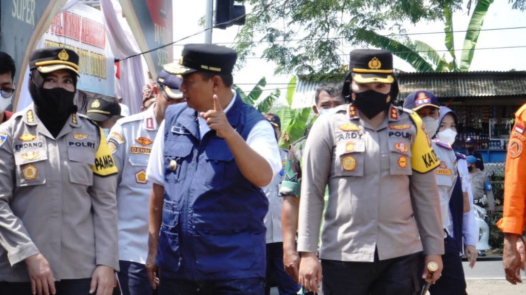 METROPOSTNews.com | Banjar – Kabidkeu (Kepala Bidang Keuangan) Polda Jabar Kombes Pol. Endang Sri Wahyu Utami, S.I.K.selaku Pamen (Perwira Menegah) Asistensi Polda Jabar wilayah Polres Banjar bersama Kapolres Banjar AKBP Ardiyaningsih, S.I.K.,M.Si. dampingi kunjungan kerja Wakil Gubernur Jawa Barat Uu Rhuzanul Ulum cek Pos Pam Cijolang Kecamatan Purwaharja Kota Banjar Perbatasan Jabar-Jateng, (06/05).