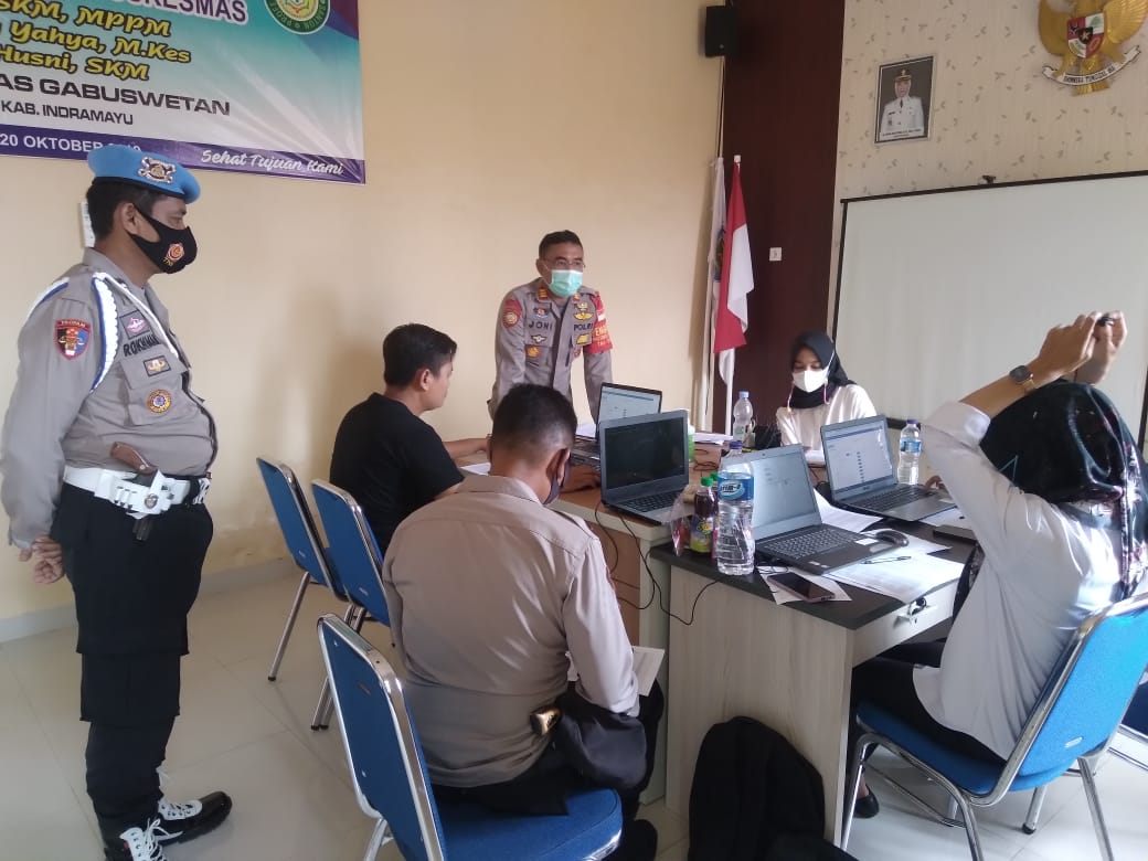 METROPOSTNews.com | Indramayu – Kapolsek Gabuswetan AKP Joni, S.H bersama anggota Polsek Gabuswetan jajaran Polres Indramayu Polda Jabar melaksanakan himbauan percepatan Input PCare kepada Operator Puskesmas Gabuswetan, Rabu (12/1/2022).