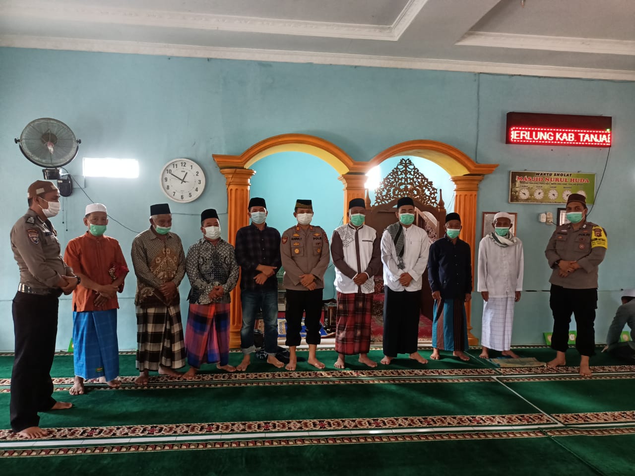 Marwiyansah SH MH selaku Polsek Merlung setelah membagikan paket sembako langsung melaksanakan shalat Jumat bersama tokoh agama dan tokoh masyarakat di masjid Nurul Huda Desa Tanjung Paku.