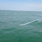 METROPOSTNews.com | Indramayu – Gelembung gelembung rembesan minyak jenis solar yang keluar dari dalam laut terlihat mengapung tengah laut sekitaran UP 6 Pertamina Balongan Desa Balongan, Kec. Balongan, Kab. Indramayu semakin meluas, Selasa ( 29/3/2022 ).