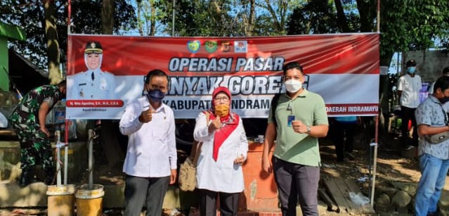 Menyikapi persoalan yang terus berlarut, Pemerintah Kabupaten Indramayu melalui sejumlah perangkat daerah di lingkungan Pemerintah Kabupaten Indramayu dibantu dengan anggota Polri dan TNI mengadakan operasi pasar di Pasar Daerah Kabupaten Indramayu, Rabu (16/2/2022).