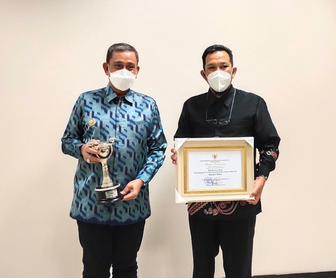 METROPOST1.COM, Jakarta — Sehari setelah menerima penghargaan dari Kelompok Kontak Tani Nelayan Andalan (KTNA) di Kementerian Pertanian, Bupati Wajo Amran Mahmud kembali mendapatkan penghargaan dari Kementerian Pemberdayaan Perempuan dan Perlindungan Anak RI, Jumat (24/9/21).