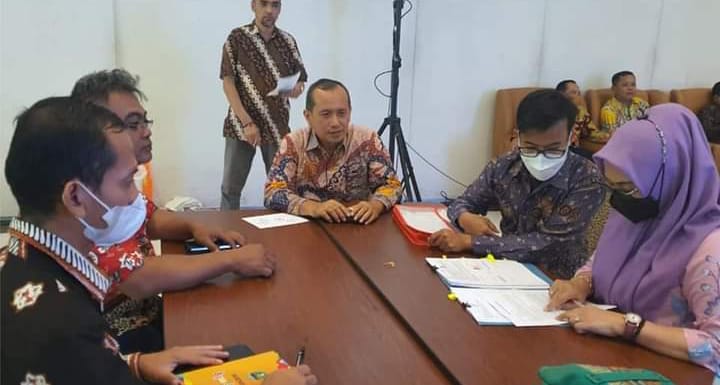 Bupati Nina Agustina Da’i Bachtiar yang diwakili Asisten Pemerintahan dan Kesejahteraan Rakyat Setda Indramayu Jajang Sudrajat bersama perwakilan Dinas Pemberdayaan Masyarakat Desa Kabupaten Indramayu tampak mendampingi Kuwu Kedokanagung.