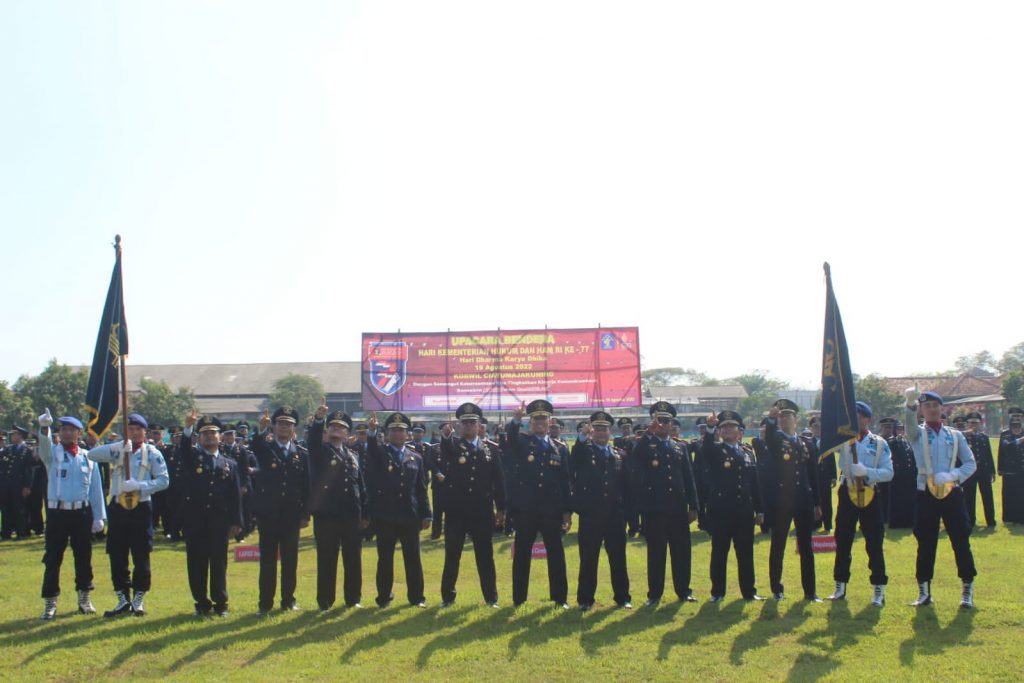 METROPOSTNews.com | Cirebon – Puncak peringatan Hari Dharma Karya Dhika (HDKD) Kementerian Hukum dan HAM (KemenkumHAM) ke-77 tahun 2022 tingkat Koordinator Wilayah Ciayumajakuning ditandai dengan Upacara dan Tasyakuran di Lapangan upacara Lapas Gintung, Kabupaten Cirebon, Jumat (19/8/22) pagi.