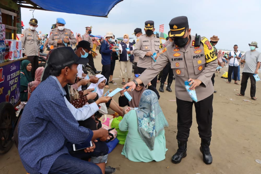Selain itu dalam Kesempatan tersebut Kapolres Lebak AKBP Wiwin Setiawan,SIK,M.H menyapa dan membagikan masker kepada para pengunjung pantai Bagedur dan pengunjung pantai Kelapa Warna.