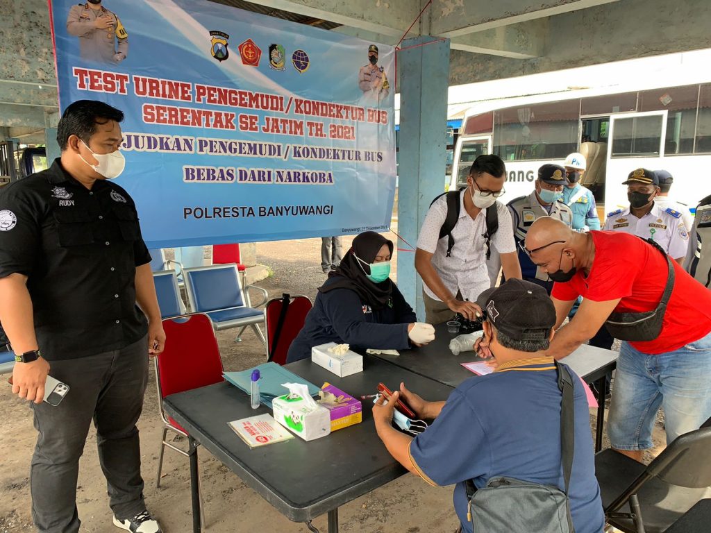 METROPOSTNews.com | BANYUWANGI — Kepolisian Resor Kota (Polresta) Banyuwangi, dan Dinas Perhubungan melakukan tes urine kepada sopir angkutan umum di Terminal Brawijaya (Karangente), pada Jumat (24/12) sekitar pukul 08.20 WIB.
