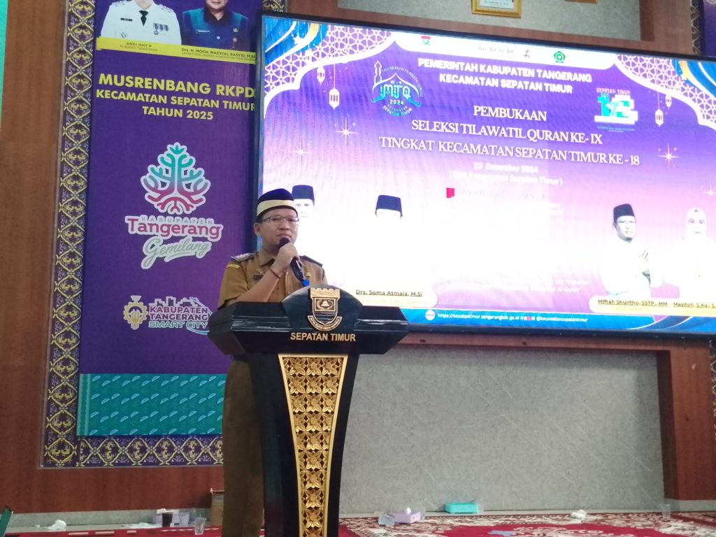Metropostnews.com-Kabupaten Tangerang – Pemerintah Kecamatan Sepatan Timur laksanakan Seleksi Tilawatil Qur’an (STQ) ke lX tingkat kecamatan, secara resmi dibuka oleh Camat Sepatan Timur pada Senin, 23/12/2024.