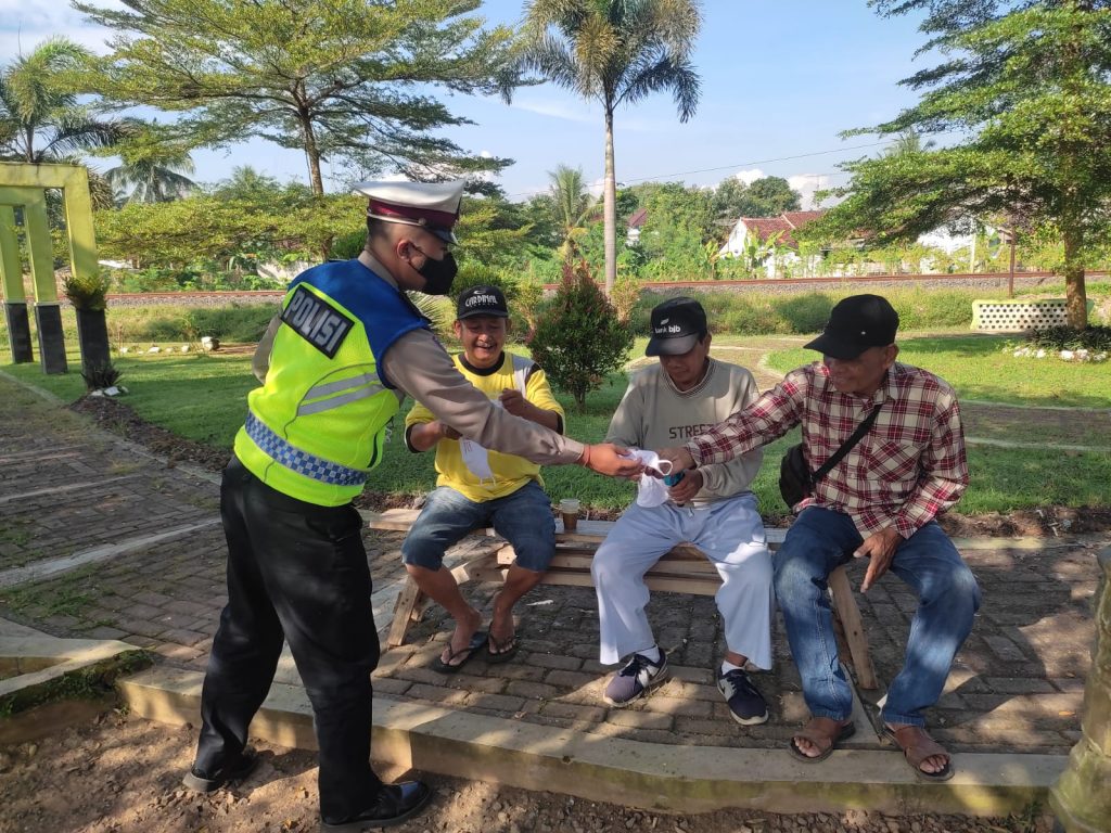 ” Secara humanis, kami membagikan masker kepada warga yang tidak mengenakan masker. Tentunya penggunaan masker ini masih tetap diperlukan, apalagi bagi warga yang berkegiatan di dalam ruangan atau sedang menggunakan transportasi umum, ” ucap Kapolsek Banjar Kompol Sudi Hartono, S.Sos.