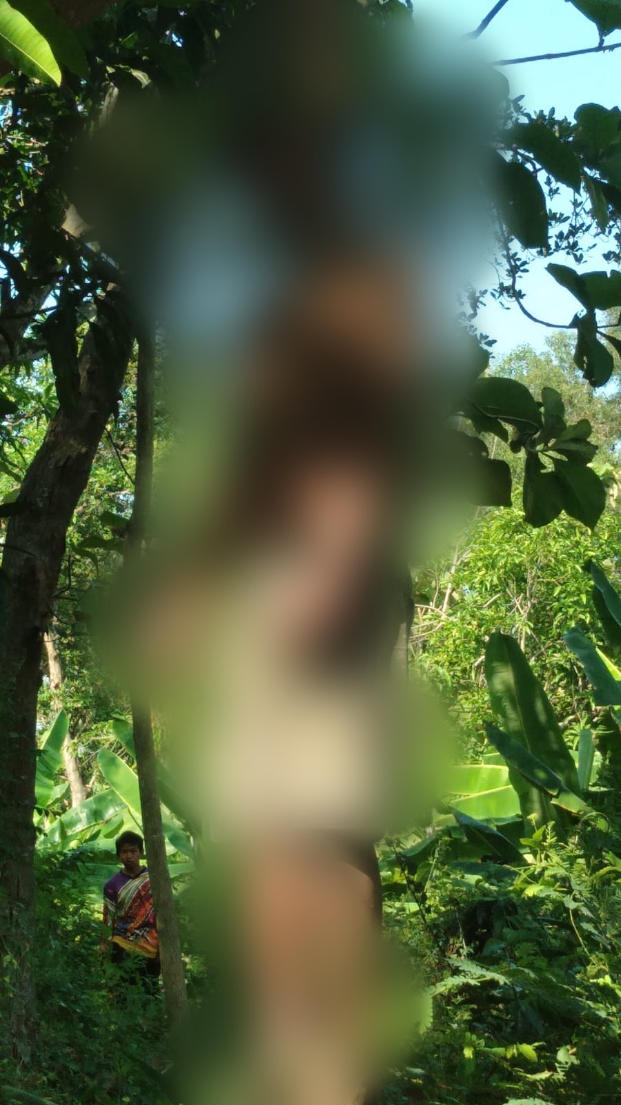 Saat masuk ke dalam kebun mangga, Jeni terkejut melihat sosok tubuh menggantung di atas pohon mangga. Ketika didekati, sosok itu ternyata seorang lelaki gantung diri menggunakan tambang plastik.