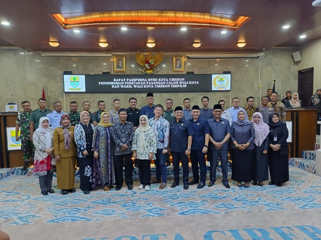 Metropostnews.com/Cirebon – Rapat paripurna DPRD Kota Cirebon mengumumkan pengusulan pengangkatan Efendi Edo SAP MSi dan Siti Farida Rosmawati SPdI sebagai Walikota dan Wakil Walikota Cirebon di Griya Sawala, gedung DPRD Kota Cirebon, Senin (13/1/25).