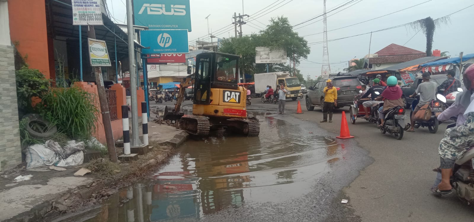 “Genangan Air hampir menutupi badan jalan sedangkan mobilitas masyarakat Jatibarang sangat tinggi begitu pula jalanan sudah mulai rusak akibat genangan air. Dalam hal ini saya merapat ke Dinas Bina Marga Provinsi agar segera dibenahi genangan air yang menutupi badan jalan, akhirnya terwujud alat berat sudah mulai bekerja bahkan saluran air sudah mulai di bongkar” urainya.