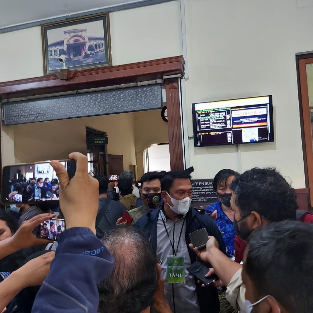 Dalam persidangan yang dilaksanakan di Ruang Sidang Cakra Pengadilan Negeri Surabaya, Rabu 12/1/2021, Majelis Hakim memutus dua terdakwa Polisi pempersekusi jurnalis Nurhadi, Bripka Purwanto dan Brigadir Muhammad Firman Subkhi dihukum 10 bulan penjara dan membayar sejumlah uang. Keduanya diputus bersalah melanggar pasal 18 ayat (1) UU Pers.