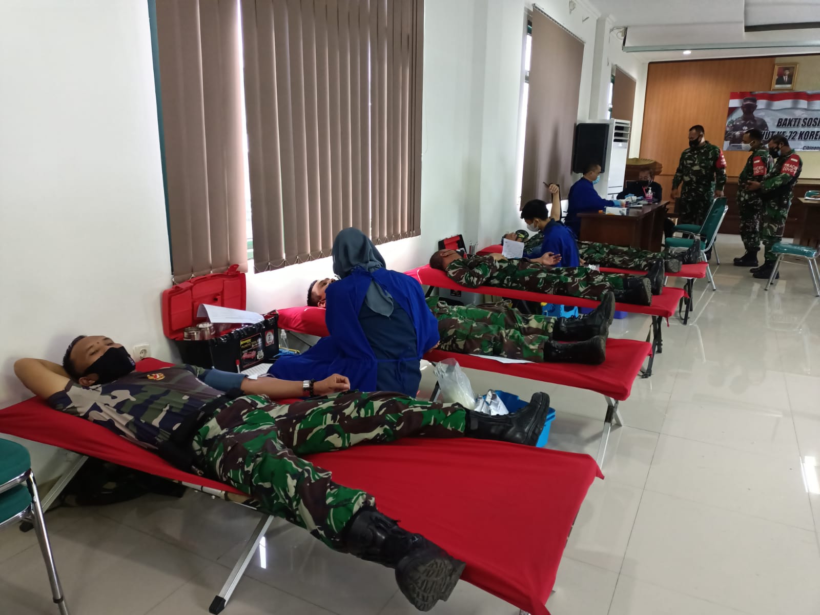 Lebih lanjut Lettu Inf. Adnan menyampaikan bahwa kegiatan ini dilaksanakan di Aula Sudirman Kodim 0621/Kabupaten Bogor Jl.Tegar Beriman Kelurahan Tengah Kecamatan Cibinong Kabupaten Bogor yang bekerjasama dengan PMI Kabupaten Bogor dan acara dibuka oleh Kasdim 0621/Kabupaten Bogor Mayor CBA Ujang Rahmat