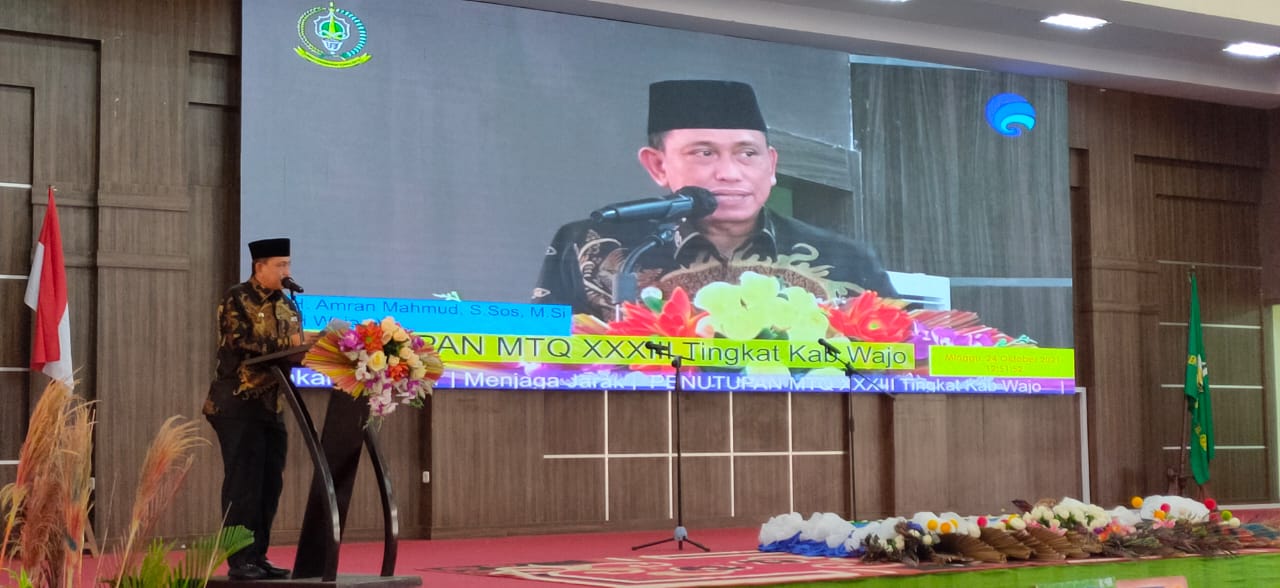 METROPOST1.COM, Wajo — Bupati Wajo, Amran Mahmud menghadiri sekaligus menutup secara resmi kegiatan Musabaqah Tilawatil Qur’an (MTQ) ke XXXIII tingkat Kabupaten Wajo di Ruang Pola Kantor Bupati Wajo, Ahad (24/10/2021).