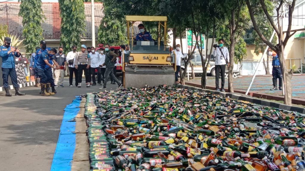 Wakil Bupati Kabupaten Majalengka Tarsono D Mardiana mengatakan, “Hari ini kita bersama-sama menyaksikan pemusnahan botol miras dari berbagai merk kurang lebih ada 5 ribu sampai 6 ribuan lebih,” kata Wakil Bupati Majalengka di Mapolres, Selasa 29 Maret 2022.