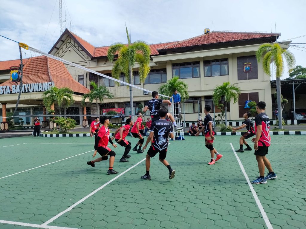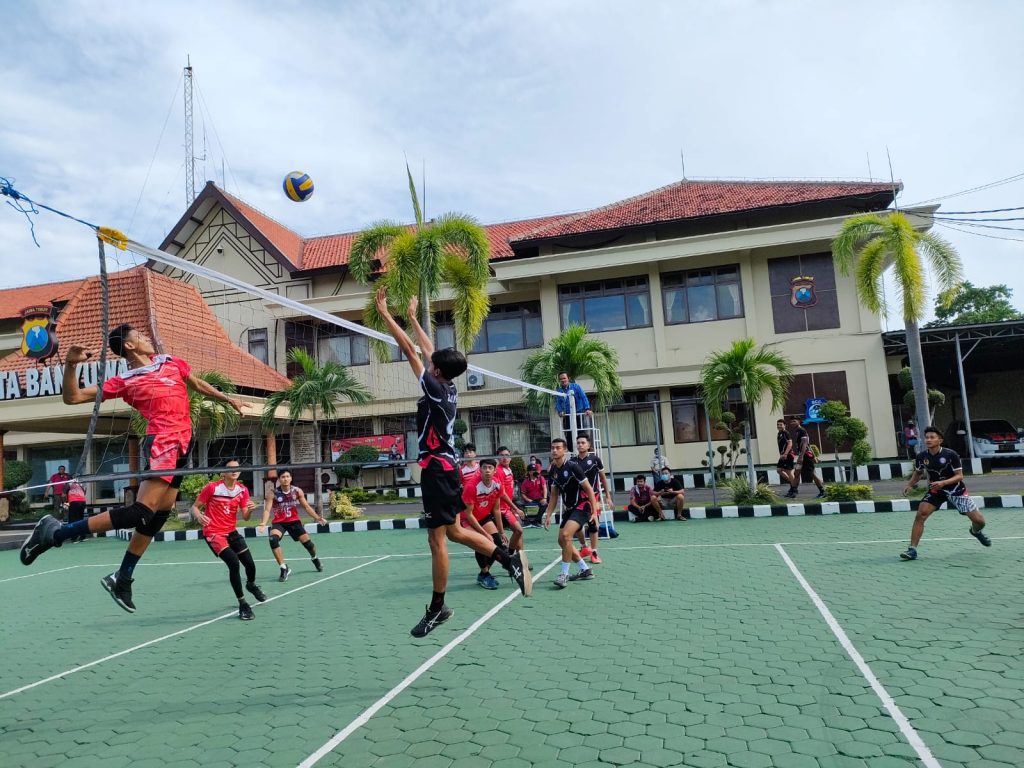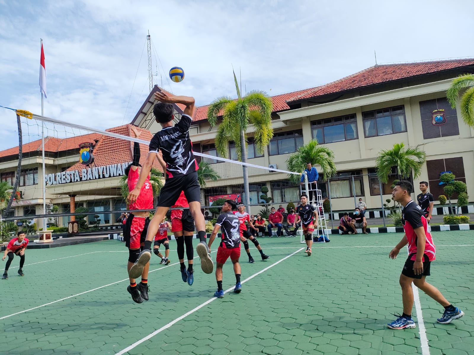 METROPOSTNews.com | Banyuwangi – Lapangan bola volly Polresta Banyuwangi dijadikan tempat latih tanding tim bola volly putra Kabupaten Karangasem Bali, yang melakukan latihan bersama tim bola volley putra Kabupaten Banyuwangi pada Kamis pagi (02/12/2021).