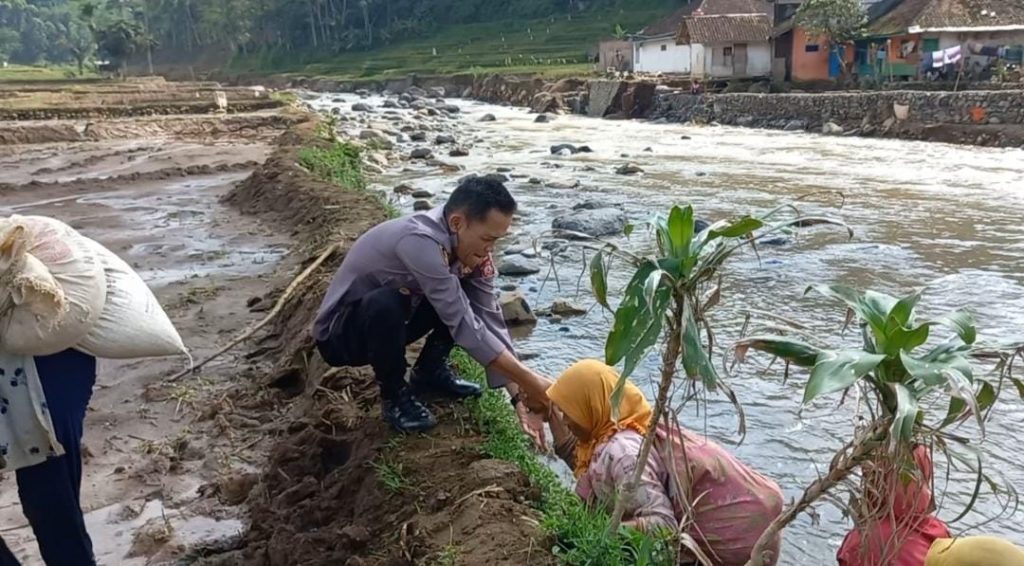 “Karena takut kian tergerus dan ada banjir susulan, kami memanen padi di dekat bantaran sungai dan alhamdulillah dibantu bapak- bapak polisi,” ucap Iis.
