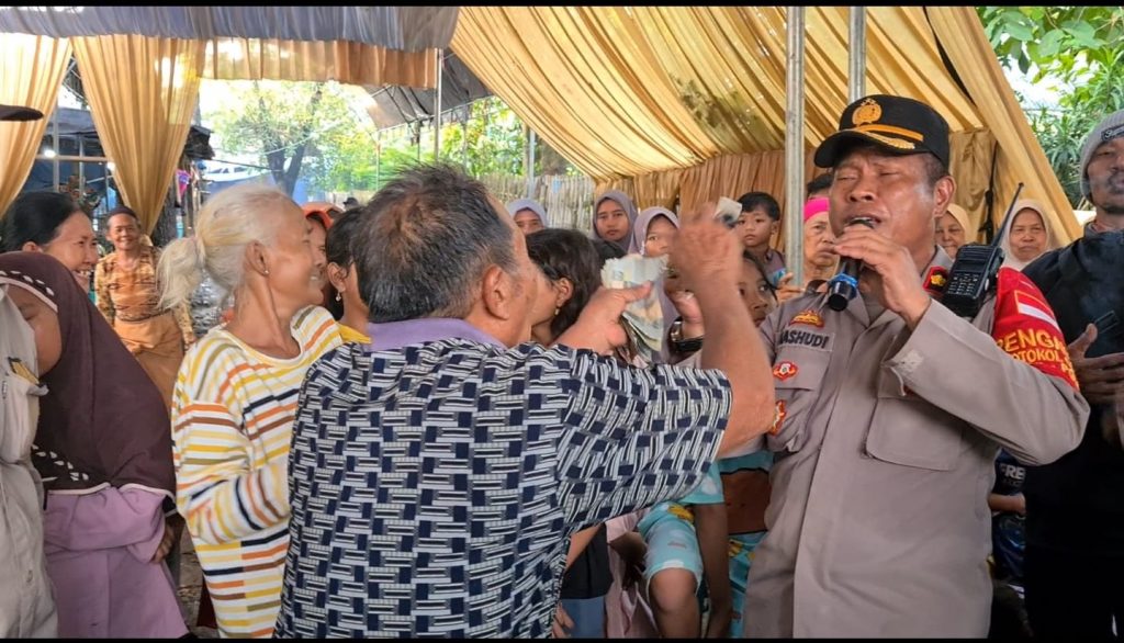 Uang yang terkumpul itu oleh Kompol Mashudi langsung diberikan kepada ibu-ibu dan anak-anak yang hadir di lokasi hajat.